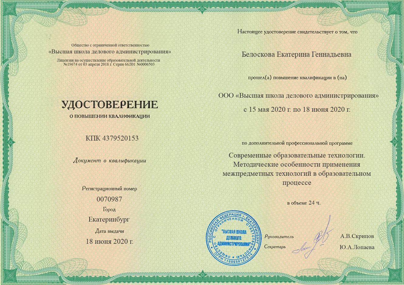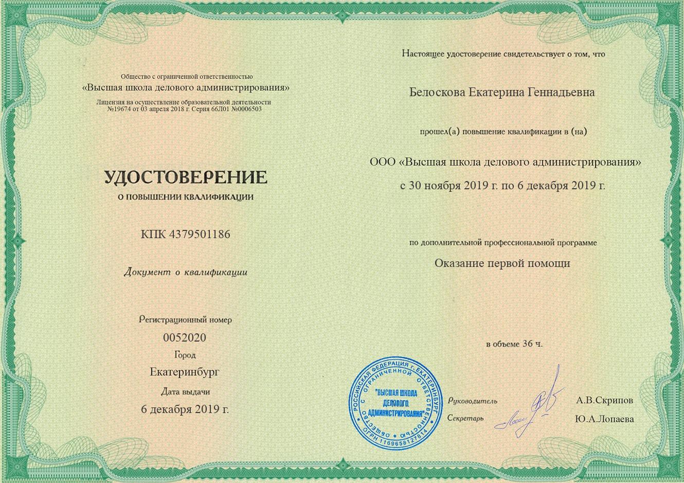Образовательная организация, выдавшая документ о повышении квалификации/профессиональной переподготовке: ООО «Высшая школа делового администрирования»