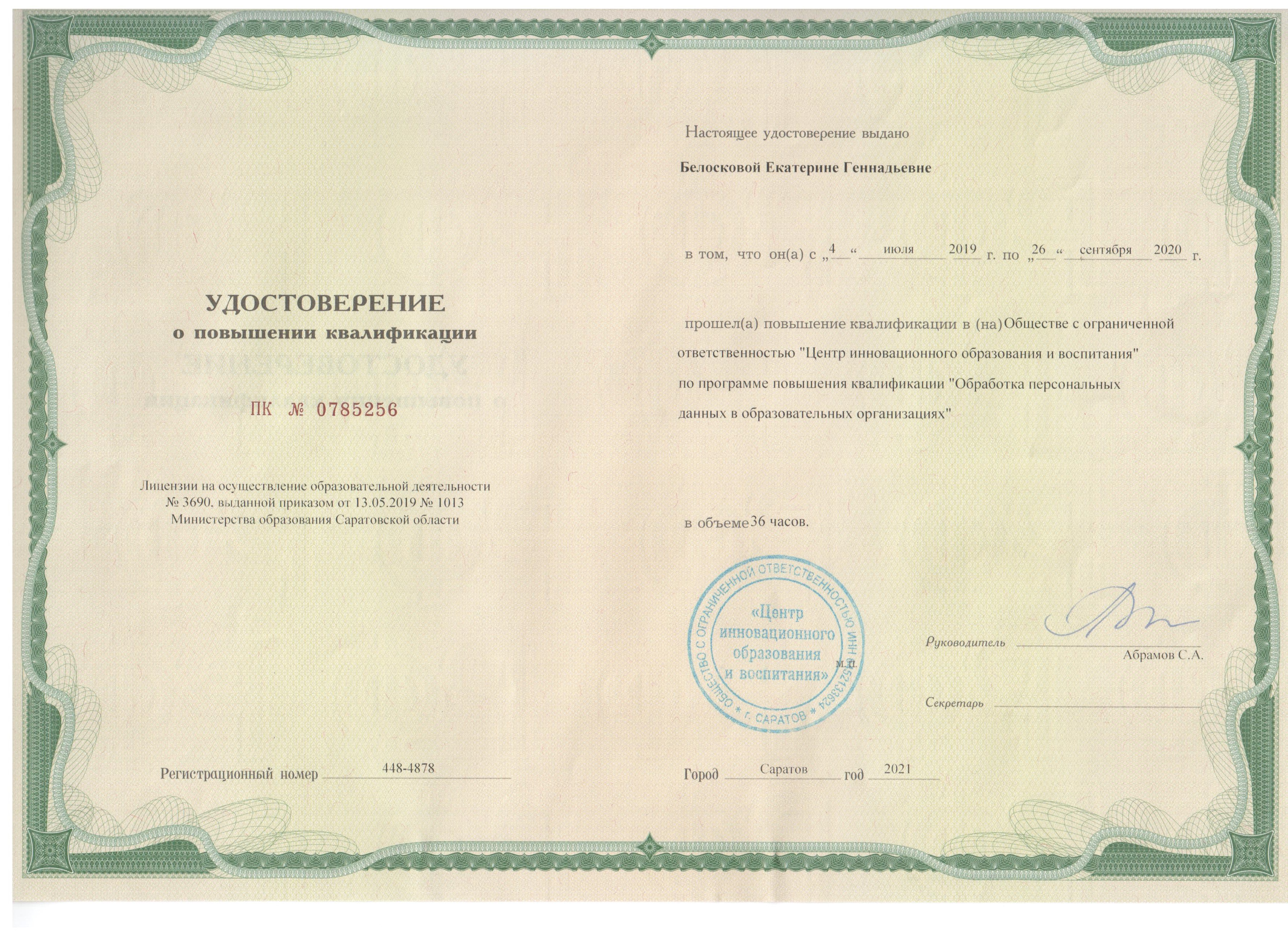 Образовательная организация, выдавшая документ о повышении квалификации/профессиональной переподготовке: Общество с ограниченной ответственностью «Центр инновационного образования и воспитания»