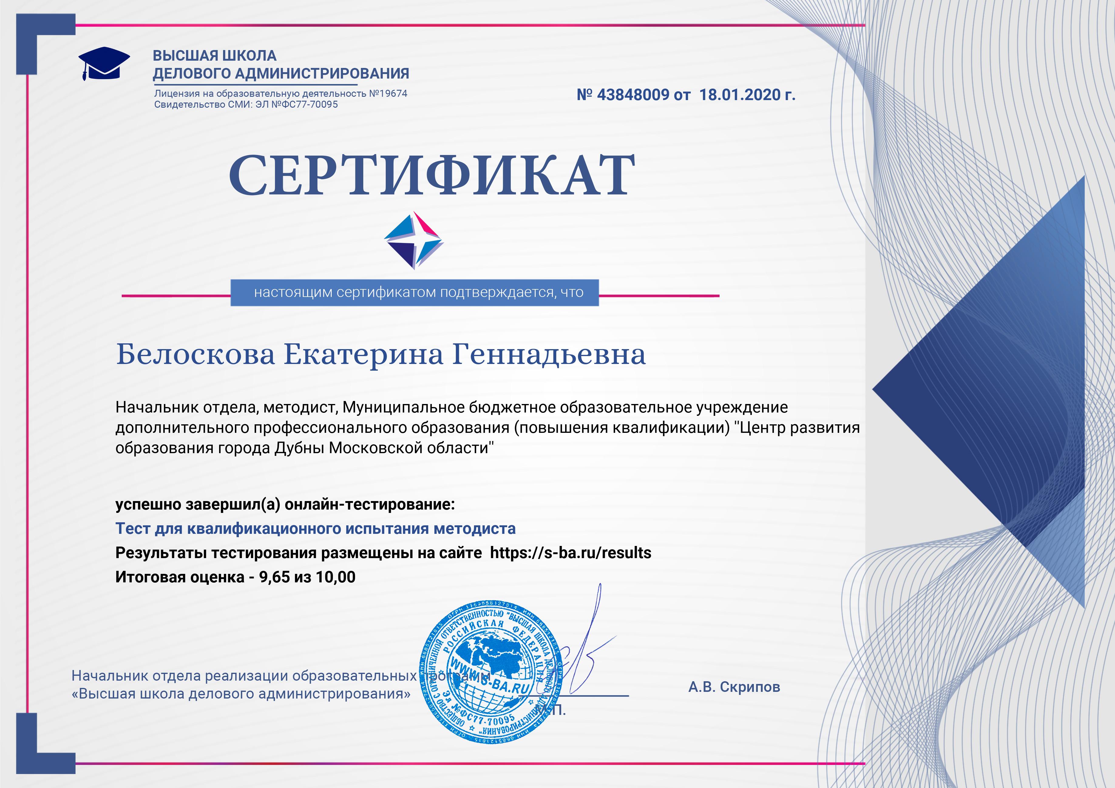 Год прохождения: 2020. Место: онлайн-площадка https://s-ba.ru/